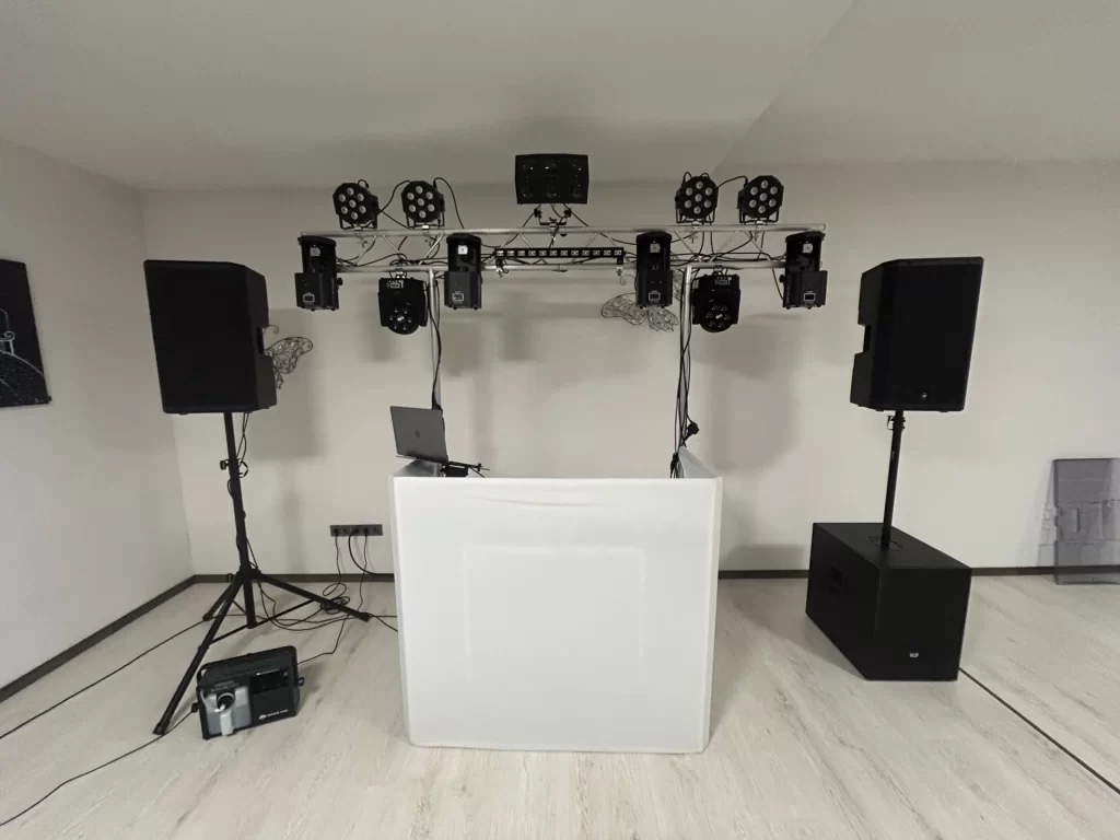 A DJ szolgáltatás mellett igény esetén hangosítást, fénytechnikát és műsorvezetést is biztosítunk, így minden egy kézből megoldható.